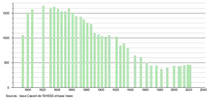 - Fiches Insee - Populations légales de la commune pour les années 2006, 2007, 2008, 2009, 2010, 2011, 2012, 2013, 2014, 2015, 2016, 2017, 2018, 2019, 2020 et 2021.