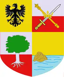 Les armes des Accurti de Königsfels sont écartelés : au premier, d'or, à l'Aigle éployée de sable ; au second, coupé d'argent, sur gueules, à un sceptre d'or en bande, et une épée d'argent, garnie d'or en barre, passés en sautoir dans une couronne d'or ; au troisième coupé d'argent, sur gueules, à un arbre arraché de sinople, fûté d'argent, brochant sur le coupé ; au quatrième de gueules, à un rocher posé à dextre et mouvant d'une mer, le tout au naturel. Deux casques couronnés.