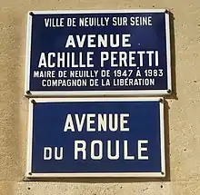 Son nom a été donné à la partie ouest de l'avenue du Roule ainsi qu'au parvis de l'hôtel de ville de Neuilly-sur-Seine et, par extension, à un groupe scolaire primaire.