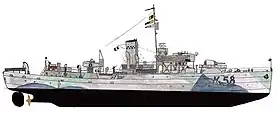 | Armement | 1 canon de marine de 4 pouces BL Mk IX 1 canon de marine de 2 livres QF 2 canons de 20 mm Oerlikon 2 mitrailleuses Hotchkiss 1 mortier anti-sous-marins Hérisson (24 coups) 4 lanceurs de grenades anti-sous-marine (60 coups) |