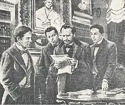 - Le « mémoire » commence en effet par ces mots : Tandis que les fils de Bélial s'efforcent de propager, surtout parmi la jeunesse, leurs sombres covens au détriment de la société religieuse et civile, il était très souhaitable que se forme une union de jeunes gens qui, levant le drapeau de la religion, affronterait l'impétuosité, et l'impétuosité s'en abstiendrait. [...]».