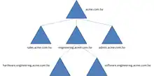 - L'arbre ou l'arborescence : domaine de toutes les ramifications. Par exemple, dans l'arbre domaine.tld, sousdomaine1.domaine.tld, sousdomaine2.domaine.tld et photo.sousdomaine1.domaine.tld sont des sous-domaines de domaine.tld.