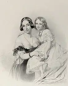 La princesse enfant avec sa mère, lithographie de Richard James Lane (1841)