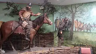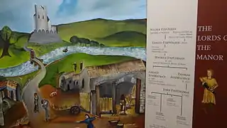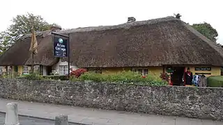 - Une série de maisons aux toits de chaume reste bien visible près de l'entrée du château.