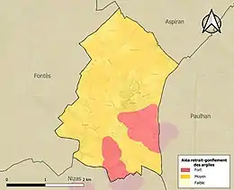 Le retrait-gonflement des sols argileux est susceptible d'engendrer des dommages importants aux bâtiments en cas d’alternance de périodes de sécheresse et de pluie. La totalité de la commune est en aléa moyen ou fort (59,3 % au niveau départemental et 48,5 % au niveau national). Sur les 560 bâtiments dénombrés sur la commune en 2019, 560 sont en aléa moyen ou fort, soit 100 %, à comparer aux 85 % au niveau départemental et 54 % au niveau national. Une cartographie de l'exposition du territoire national au retrait gonflement des sols argileux est disponible sur le site du BRGM[16],[Carte 2].