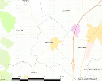 Adissan [a.di.sɑ̃] (en occitan Adiçan [a.ði.'san]) est une commune française située dans le centre du département de l'Hérault en région Occitanie.
