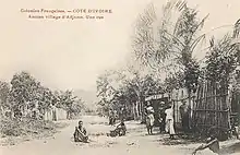 Alors que les colons s'installent au Plateau, les premiers migrants venus travailler sur le chantier du chemin de fer Abidjan-Niger construisent leurs cases aux abords du village d'Adjamé[5].