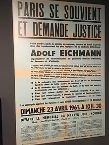 Adolf Eichmann, né le à Solingen en Allemagne et mort par pendaison le dans la prison de Ramla près de Tel Aviv-Jaffa en Israël est un membre du parti nazi, criminel de guerre et fonctionnaire du Troisième Reich.