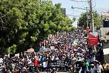 Le , des milliers de manifestants défilent à Pétion-Ville dans plusieurs rues de Port-au-Prince et celles de la commune de Delmas.