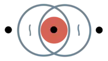 Il y a deux cercles interconnectés (colorés en rouge et en bleu) en bas du message, avec un trou fait au milieu du cercle rouge et deux autres trous en dehors des cercles.