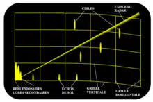 Les afficheurs des radars utilisent sur l'une de leurs entrées la sortie de leur récepteur radio. Au tout début, ces signaux étaient envoyés dans les entrées X et Y pour déplacer le spot sur l'écran et indiquer la présence d'un écho. Les radars plus modernes sont généralement dotés d'une antenne rotative (ou, au moins, capable de se déplacer) pour observer une plus grande partie du ciel et dans ce cas, les entrées X et Y sont assujetties électroniquement au mouvement mécanique de l'antenne. Les paragraphes ci-dessous décrivent sommairement les différentes manières de relier ces signaux aux entrées et le type d'affichage qui en résulte.