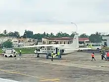 Un avion de l'Africa's Connection STP à l'aéroport international de Sao Tomé.