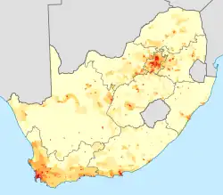 Elle reste la langue majoritaire dans les provinces du Cap-Occidental et du Cap-du-Nord grâce aux métis qui font de ces provinces les seules où l'afrikaans conserve son rôle de langue incontournable avec l'anglais. Elle conserve une place non négligeable dans les provinces du Gauteng et de l'État-Libre où les Afrikaners demeurent une minorité importante. L'afrikaans, pour des raisons historiques, reste une langue géographiquement dispersée[7],[8] :