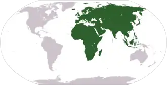 L'Ancien Monde regroupe l'Afrique, l'Asie, l'Europe et leurs îles environnantes séparées des masses continentales, telles que Madagascar, l'archipel japonais ou encore les îles Britanniques, connus avant la découverte du Nouveau Monde.