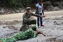 Un garde de l'agence avec un Marine américain, dans le parc national de Pongara.