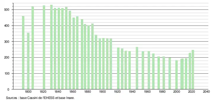 (Sources : Ldh/EHESS/Cassini jusqu'en 1999[17] puis Insee à partir de 2006[26].)