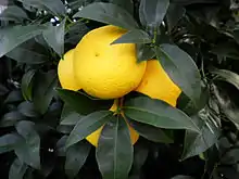 Citrus x hassaku | Hybride de pamplemoussier (C. maxima) et le mandarinier Kunenbo (C. nobilis) apprécié pour la fraicheur de son jus. |