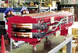 L'intensité de la force qui peut être appliquée sur une particule chargée par un aimant dipolaire est l’un des facteurs qui limite l'énergie des protons et des ions dans les synchrotron et les cyclotron modernes. À mesure que l’énergie des particules accélérées augmente, il faut une force de plus en plus importante pour dévier leur direction et donc des champs magnétiques de plus en plus intenses pour leur permettre de rester sur une même orbite. Les limitations de l'intensité du champ magnétique produit par les électroaimants dipolaires modernes nécessitent que les synchrotrons et les cyclotrons soient de taille toujours plus importante (augmentant ainsi le nombre d'aimants dipolaires utilisés) pour compenser l'augmentation de la vitesse des particules. Dans le plus grand synchrotron moderne, le Grand collisionneur de hadrons, il ne faut pas moins de 1232 aimants dipolaires principaux pour courber la trajectoire du faisceau de particules, chacun mesurant 15 mètres de long et pesant 35 tonnes[2].