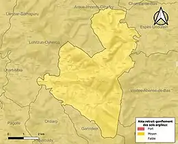 Le retrait-gonflement des sols argileux est susceptible d'engendrer des dommages importants aux bâtiments en cas d’alternance de périodes de sécheresse et de pluie[41]. La totalité de la commune est en aléa moyen ou fort (59 % au niveau départemental et 48,5 % au niveau national)[Carte 4]. Depuis le , en application de la loi ELAN, différentes contraintes s'imposent aux vendeurs, maîtres d'ouvrages ou constructeurs de biens situés dans une zone classée en aléa moyen ou fort[Note 8],[42].