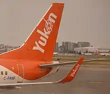 La queue est peinte en orange avec un "Yukon" stylisé imprimé en blanc. Sur les ATR 42-300 et 737-400 / -500, l'orange se prolonge en dessous sur le fuselage.