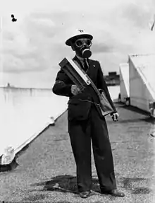 - (en) Cet article est partiellement ou en totalité issu de l’article de Wikipédia en anglais intitulé « Air Raid Precautions » (voir la liste des auteurs).