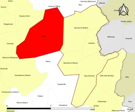 Localisation de l'aire d'attraction d'Étain dans le département de la Meuse. | |