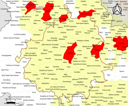 Localisation de l'aire d'attraction d'Auxerre dans le département de l'Yonne. | |