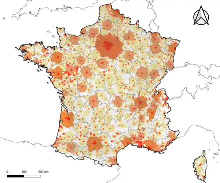 La carte des aires d'attractions des villes en France métropolitaine est, au , la suivante[6] :