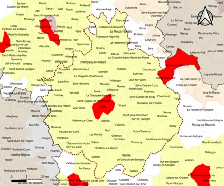 Localisation de l'aire d'attraction de Blois dans le département de Loir-et-Cher. | |