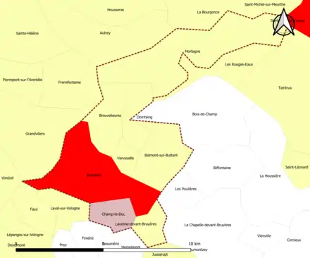 | Brouvelieures | 88076 | Vosges | commune de la couronne | 7,36 | 421 (2021) | 57 | |