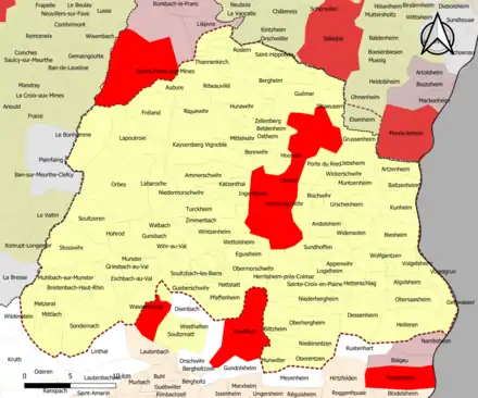 | Nombre de communes | 95 soit 94 (Haut-Rhin) + 1 (Bas-Rhin) |