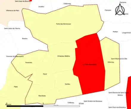 Localisation de l'aire d'attraction de la Côte-Saint-André dans le département de l'Isère.