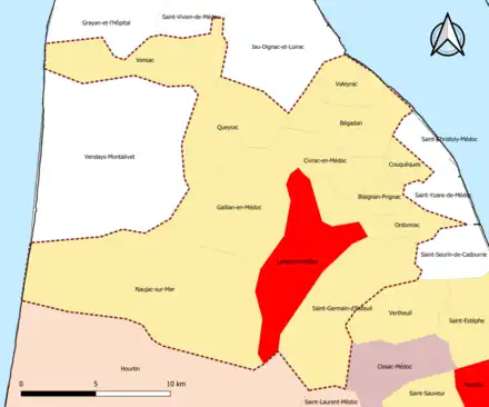 | Gaillan-en-Médoc | 33177 | Gironde | commune de la couronne | 42,02 | 2 365 (2021) | 56 | |