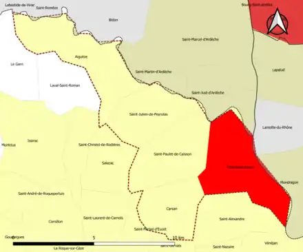 | Saint-Paulet-de-Caisson | 30290 | Gard | commune de la couronne | 16,88 | 1 858 (2021) | 110 |