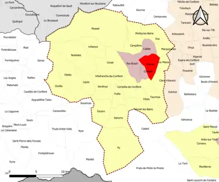 | Corneilla-de-Conflent | 66057 | Pyrénées-Orientales | commune de la couronne | 11,02 | 531 (2021) | 48 | |