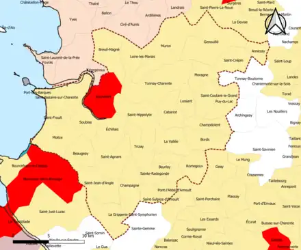 | Loire-les-Marais | 17205 | Charente-Maritime | commune de la couronne | 12,46 | 386 (2021) | 31 | |