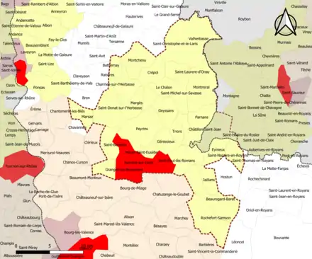 | Crépol | 26107 | Drôme | commune de la couronne | 11,42 | 528 (2021) | 46 | |