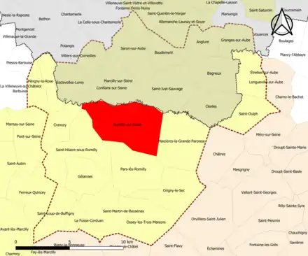 Localisation de l'aire d'attraction de Romilly-sur-Seine dans le département de l'Aube. | |