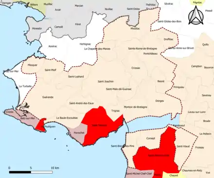 Localisation de l'aire d'attraction de Saint-Nazaire dans le département de la Loire-Atlantique. | |