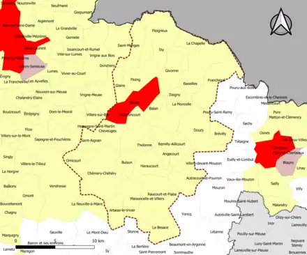 Localisation de l'aire d'attraction de Sedan dans le département des Ardennes. | |