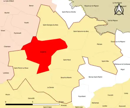 | Saint-Saturnin-du-Bois | 17394 | Charente-Maritime | commune de la couronne | 25,21 | 905 (2021) | 36 | |