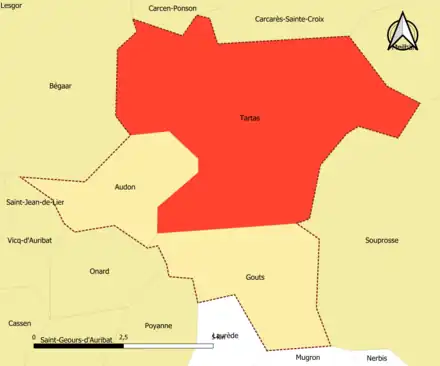 Localisation de l'aire d'attraction de Tartas dans le département des Landes. | |