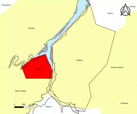 | Trédarzec | 22347 | Côtes-d'Armor | commune de la couronne | 11,68 | 1 061 (2021) | 91 |