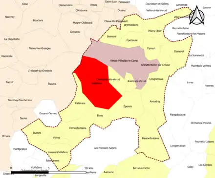 | Vercel-Villedieu-le-Camp | 25601 | Doubs | commune du pôle principal | 29,96 | 1 703 (2021) | 57 | |