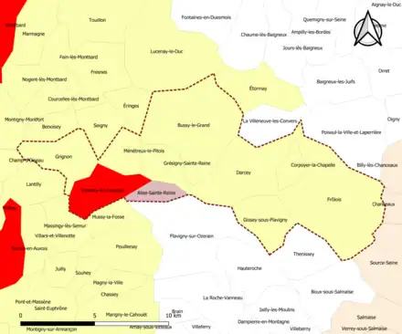 | Bussy-le-Grand | 21122 | Côte-d'Or | commune de la couronne | 29,69 | 304 (2021) | 10 | |