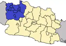 | Ville de Tangerang | 184 | 1 488 700 | 8 090 |
