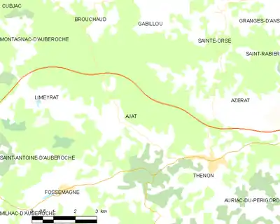 Ajat est limitrophe de sept autres communes.
