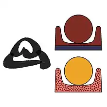 | C'est un idéogramme dans le terme ȝḫt : | « horizon »[1],[2],[3] et dérivés. |