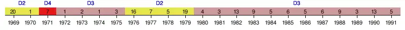 | 1971 | 3e Zone 3 | 7e | 42 | 38 | 16 | 10 | 12 | 37 | 30 | +7 | |