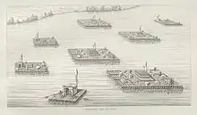 Radeaux transportant les fouilles de diverses missions sur le Tigre (Victor Place 1867)